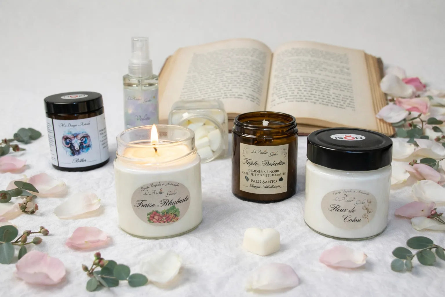 Nous utilisons exclusivement de la cire de soja et de colza, sans OGM ni paraffine, et des mèches en coton non traité. Nos parfums proviennent de Grasse, capitale mondiale du parfum.